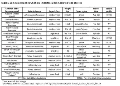 Table from Bird Life Australia's 14 page PDF article "Black Cockatoo Guidelines 2019" please see link for EXTENSIVE info.